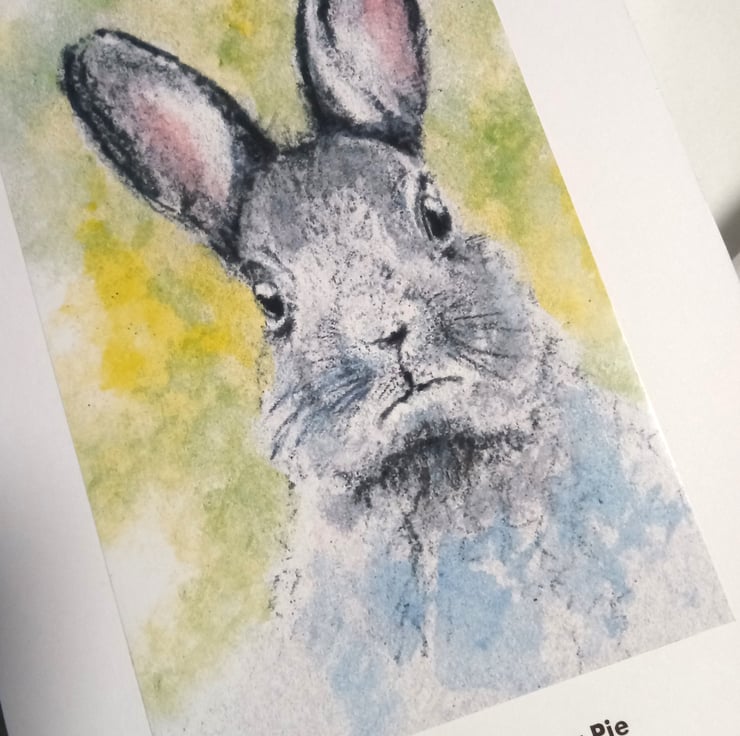 An original hand painted watercolour print of a Sussex southdowns Rabbit printed Greeting Card, taken from the illustrated book 'I am Michael Glare and this is my Life', with 400 watercolour prints just like this. 'Every watercolour has a story.' Card size 9" x 6" inside blank for writing on with a plain white envelope.