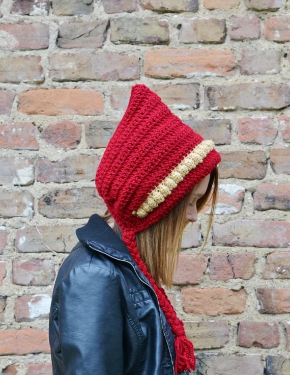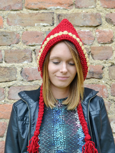 Crocheted pixie hood hat, a new design of mine and will be making this in different colours over the next few weeks. If you would like it made in a certain colour message me. Great for ladies who love to stay young and look good.