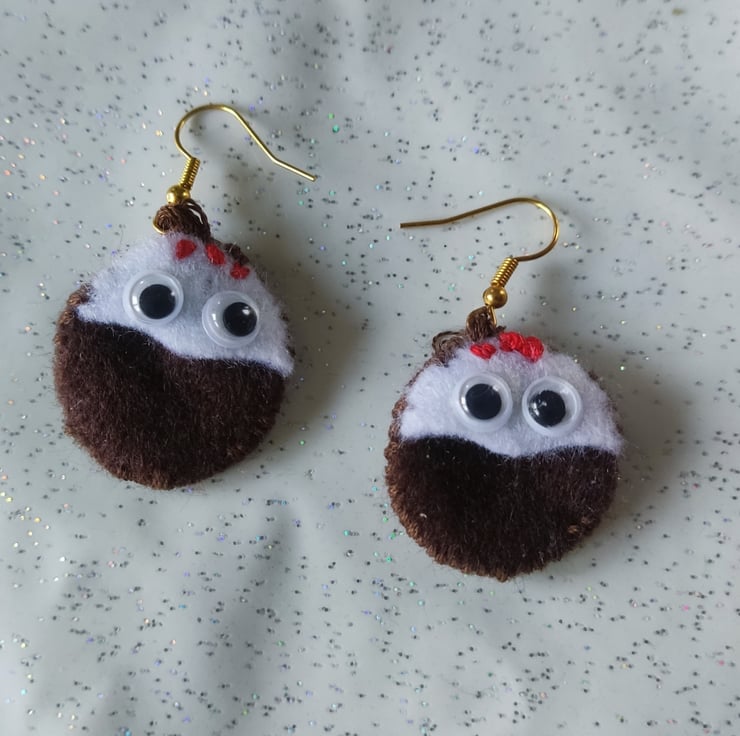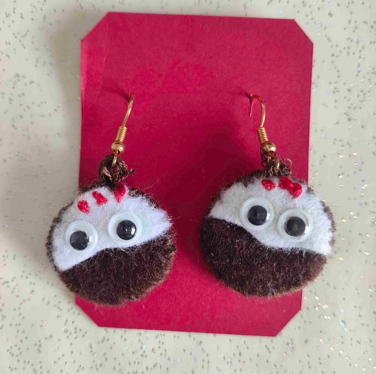 Handmade felt Christmas pudding earnings, the googly eyes really finish these off perfectly!!
