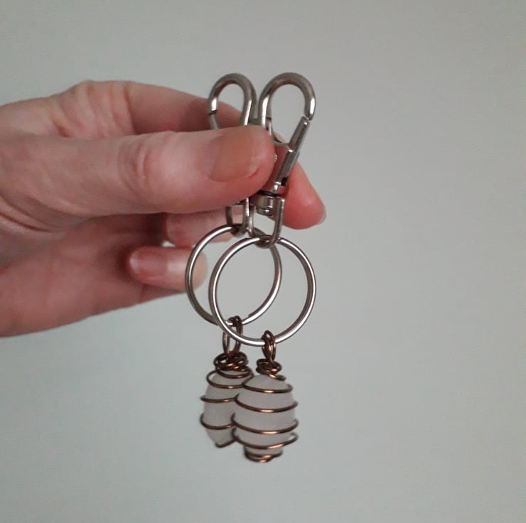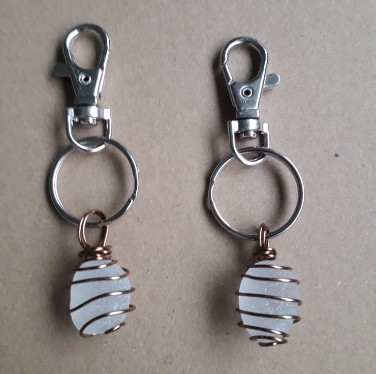 This cute bag charm will be a great gift for any sea glass lover. I have wrapped each sea glass bubble in bronze coloured copper wire and attached it to a sturdy, good quality silver tone ring with 360 swivel lobster clasp. Each sea glass bubble measures approximately 2 cm and is presented in a white organza bag.