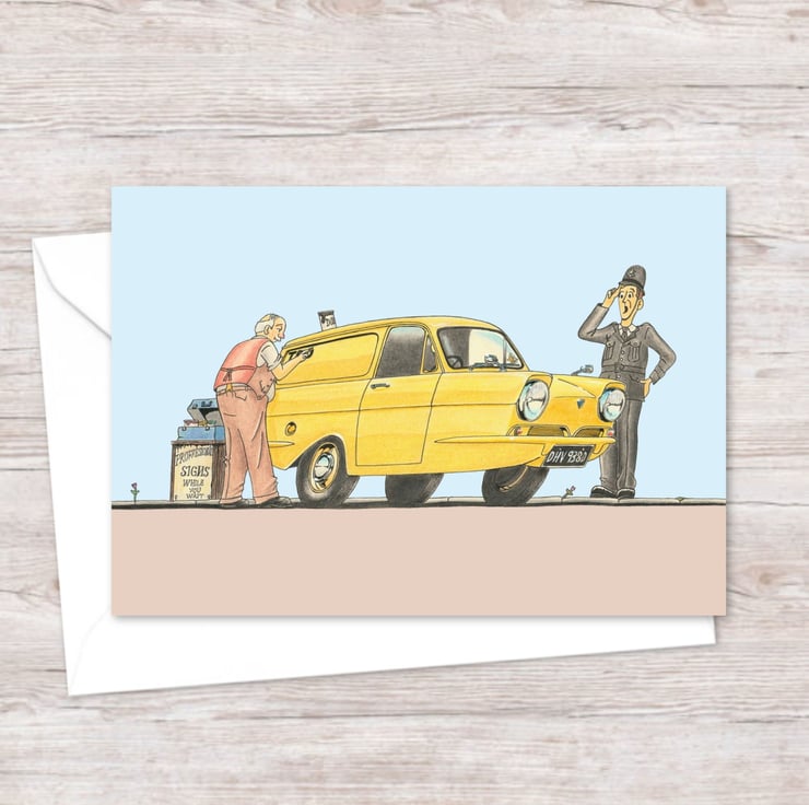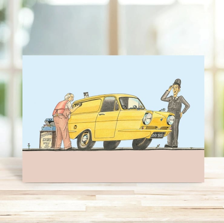Three Wheeler Van Greeting Card: Nostalgic Cartoon Art (321)