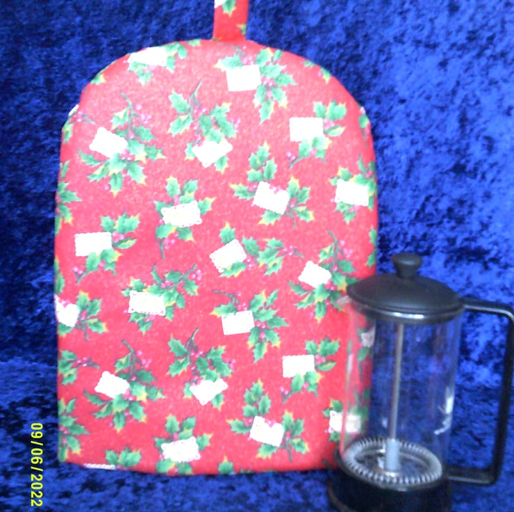 This Christmas Themed Coffee Pot or Cafetiere Cosy is designed for a smaller pot - up to a 4 cup - and will keep your Coffee hot for a couple of hours.