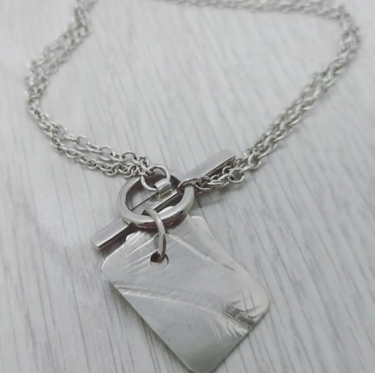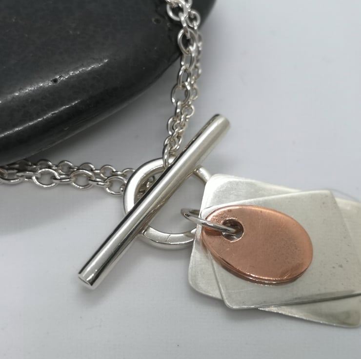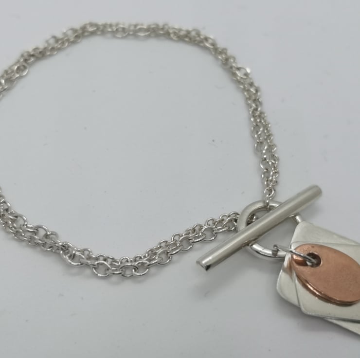 Twisted Silver Chains with a T-Bar Fastening and Silver and Copper Charms.