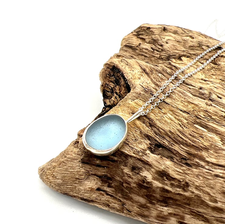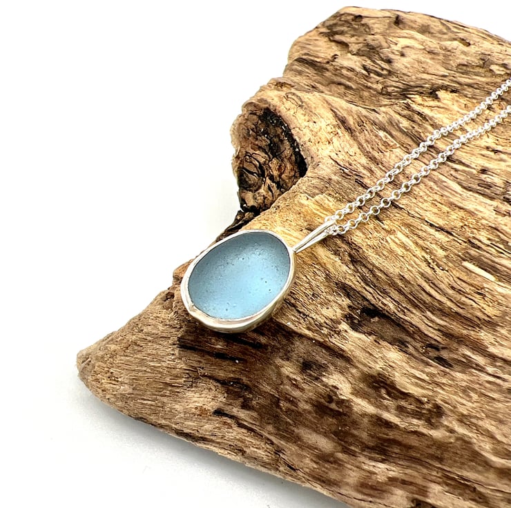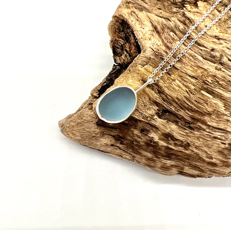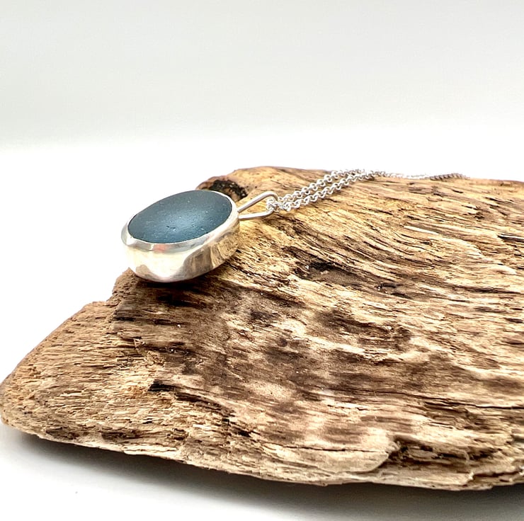 I have set this piece of sea glass in a handmade sterling silver setting and hung it on an 18 inch sterling silver belcher chain.