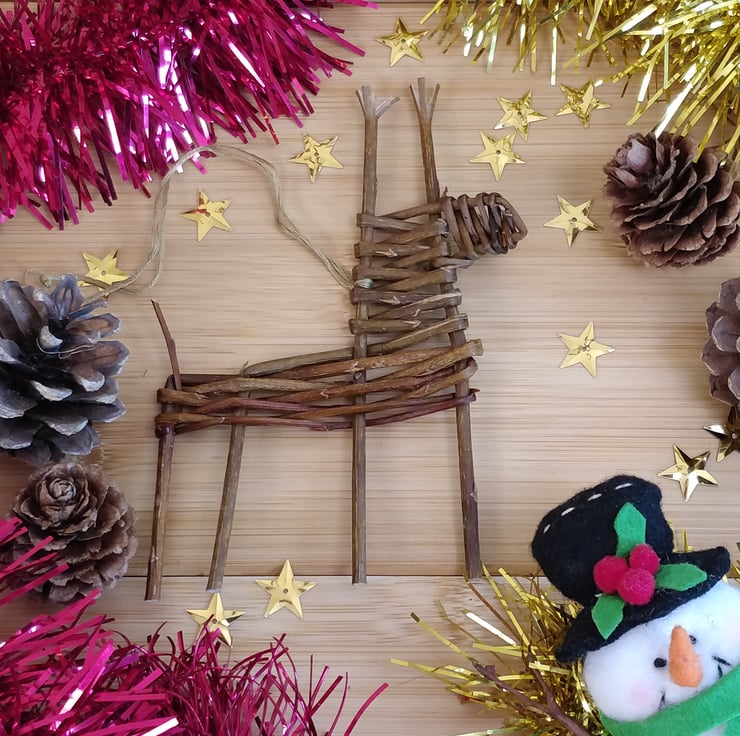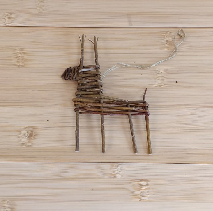 Add some rustic charm to your festive decorations this year with this willow reindeer. Handmade from locally grown willow in the Scottish Highlands and comes with a gold thread for hanging.