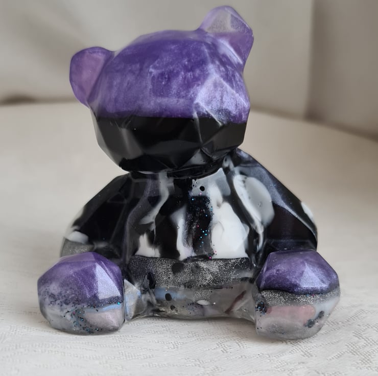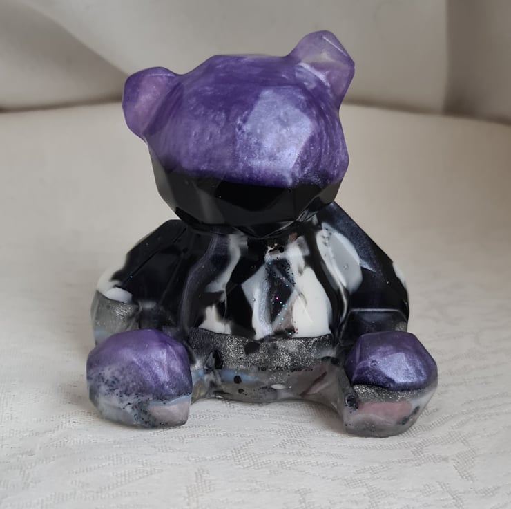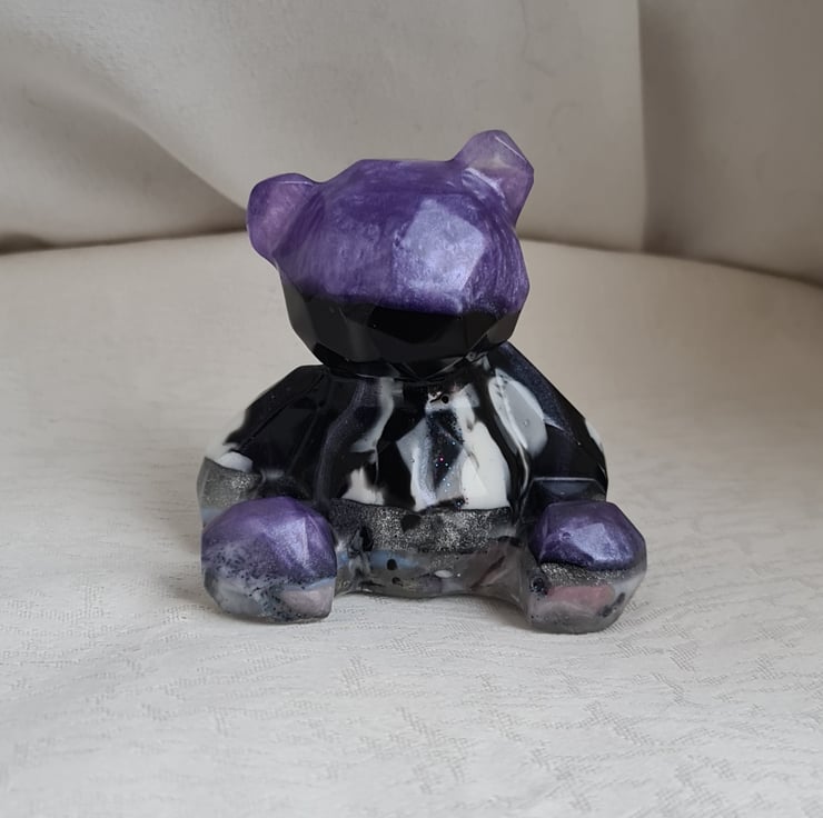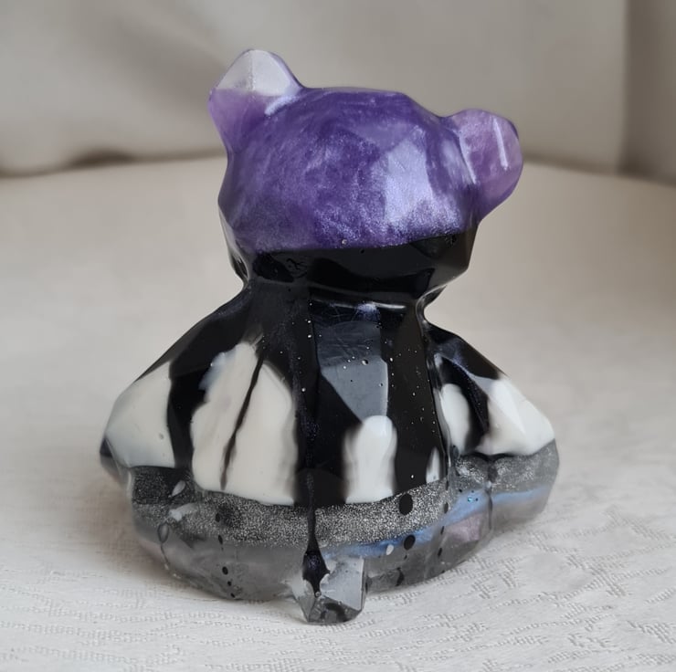 A gorgeous keepsake Bear that is made of random drips of left over Resin. This cute little handmade figurine is called "Bits and Pieces" as it is made from odd drips of resin and has an abstract drippy look. Great as an unusual, handmade gift for someone who loves unusual resin art.