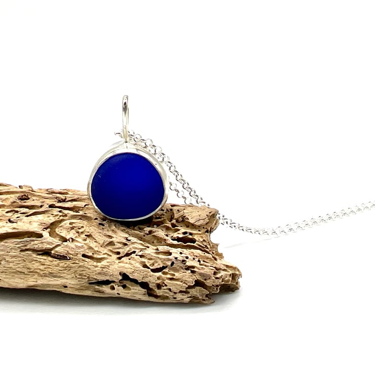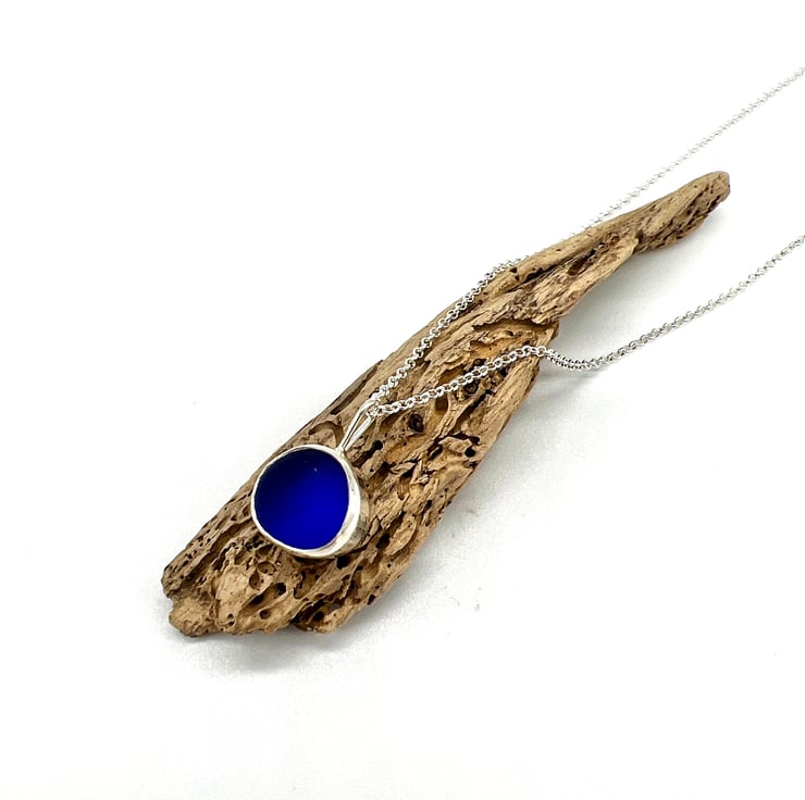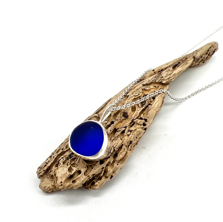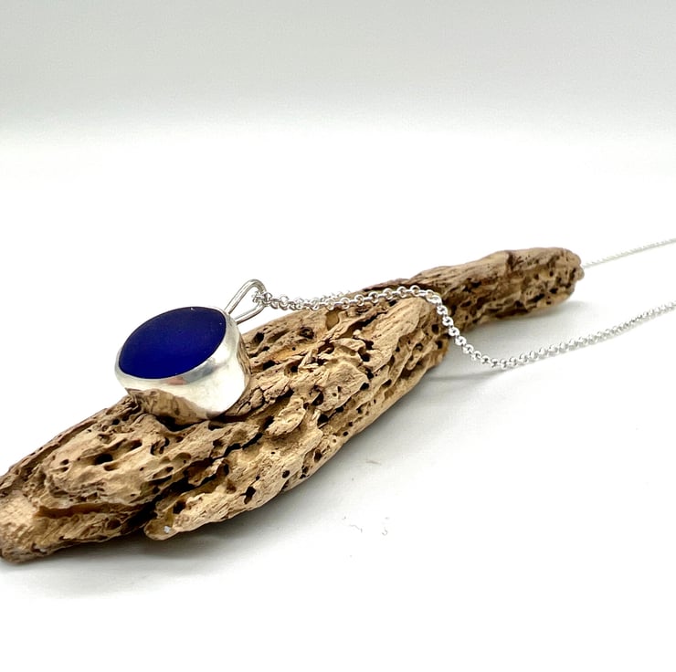 I have set this piece of sea glass in a handmade sterling silver setting and hung it on an 18 inch sterling silver belcher chain.