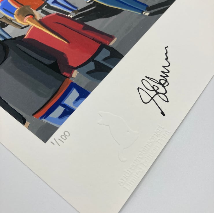The framed print comes with a 'Certificate of Authenticity' which documents the details of the original painting and the art print. The Certificate of Authenticity is affirmed with a signature from both myself (the artist) and the printer.