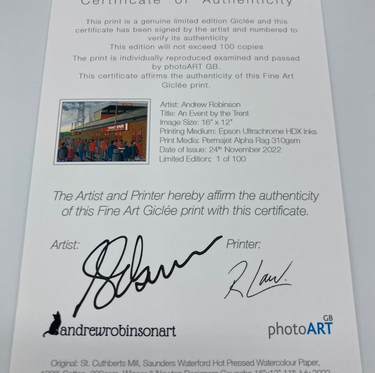 Titled ‘An Event By The Trent’ this is a unique Nottingham Forest F.C limited edition print direct from myself the artist. My artworks are a celebration of the match day experience and of stadium architecture.