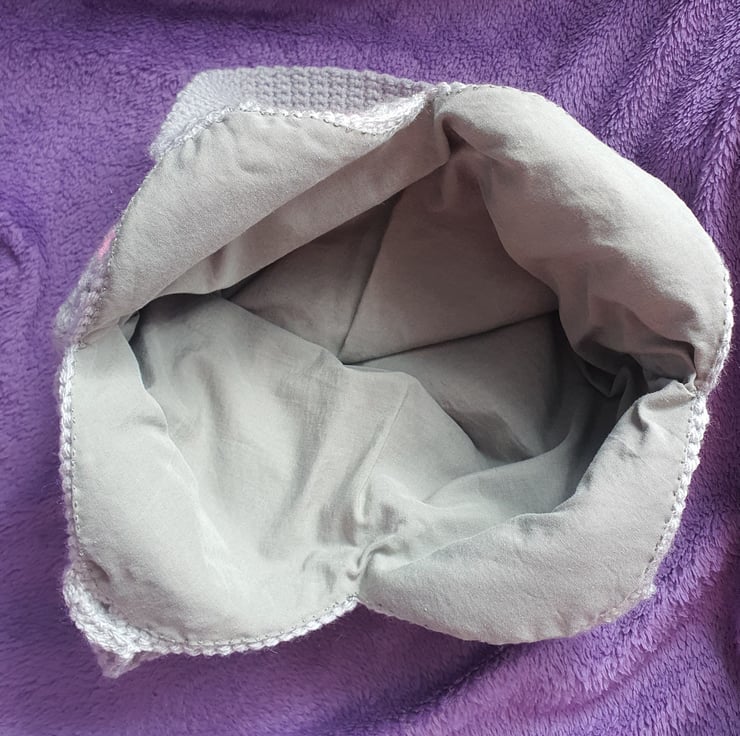 Crocheted with 100% Acrylic yarn and fully lined with polycotton material.