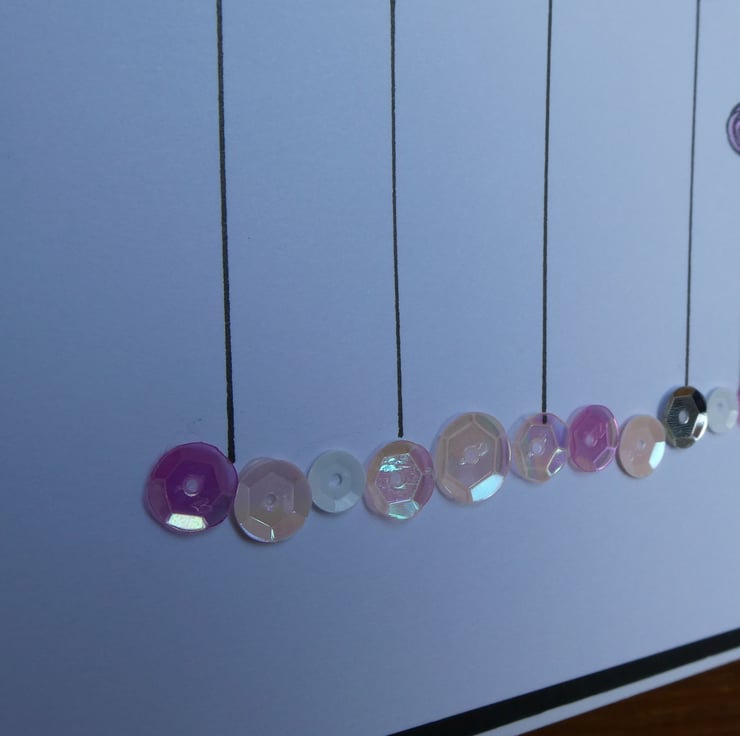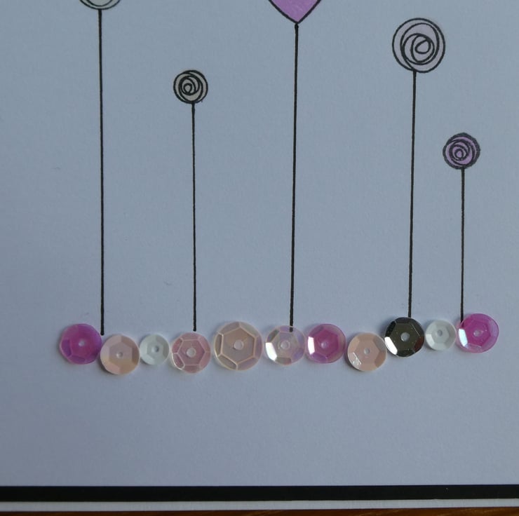 As each card is hand stamped and coloured by me the stamping and colouring will be almost identical on each card but the exact colour and positioning of the sequins may vary but will always come from the same colour selection.