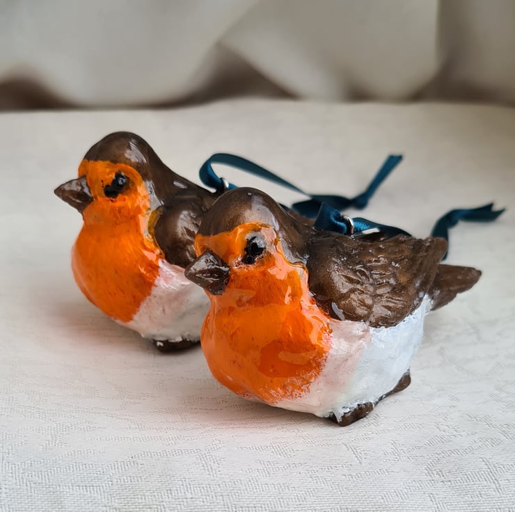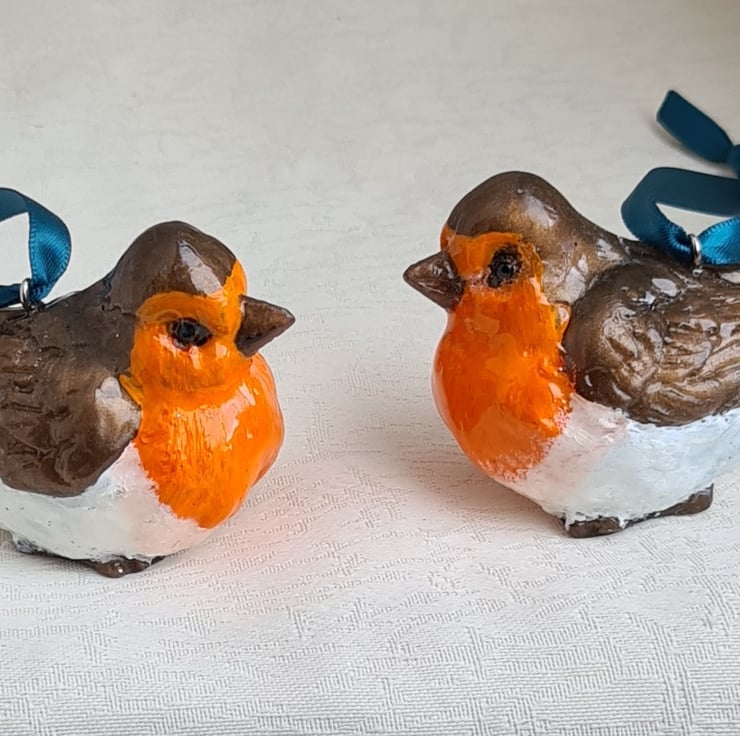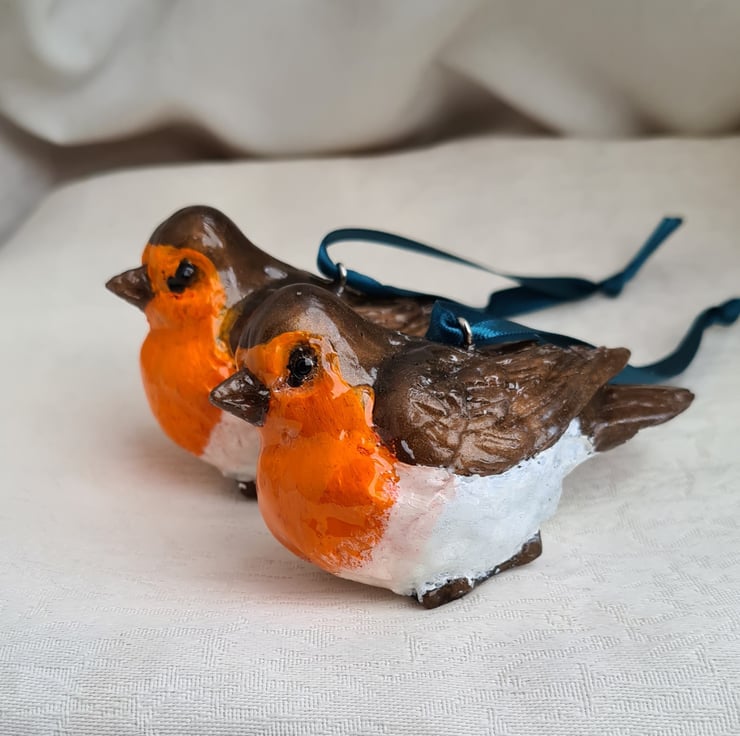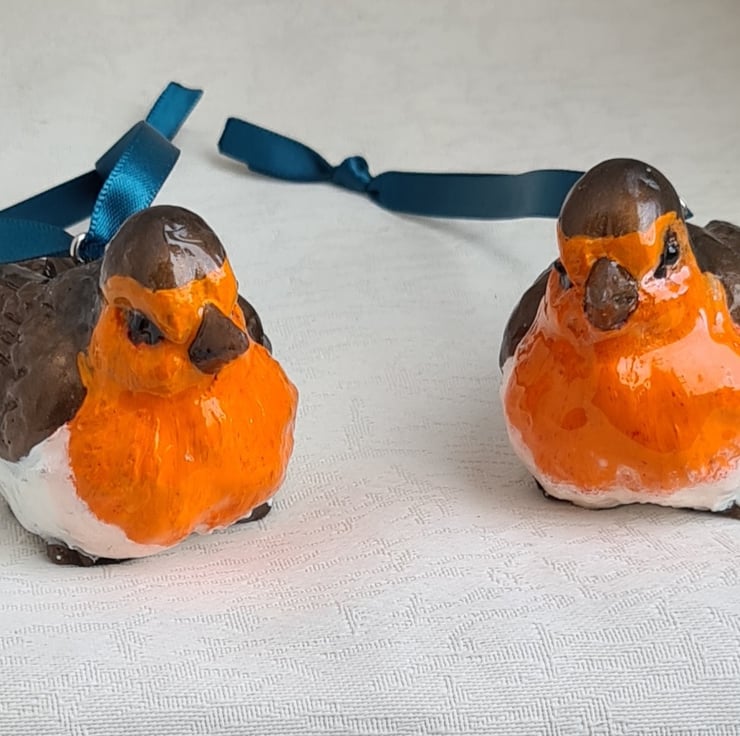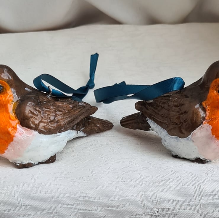 Lovely Pair of Resin Robins - Hanging Decorations