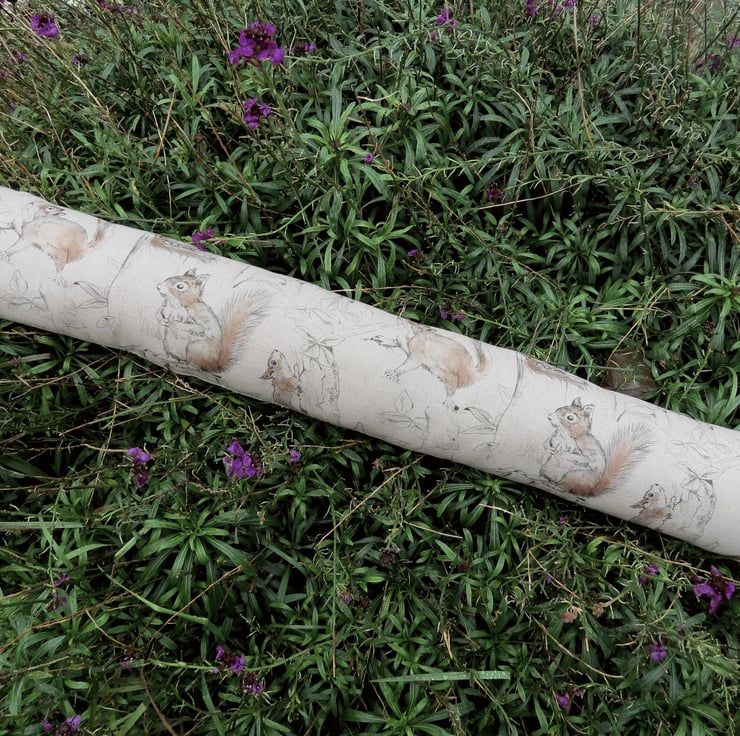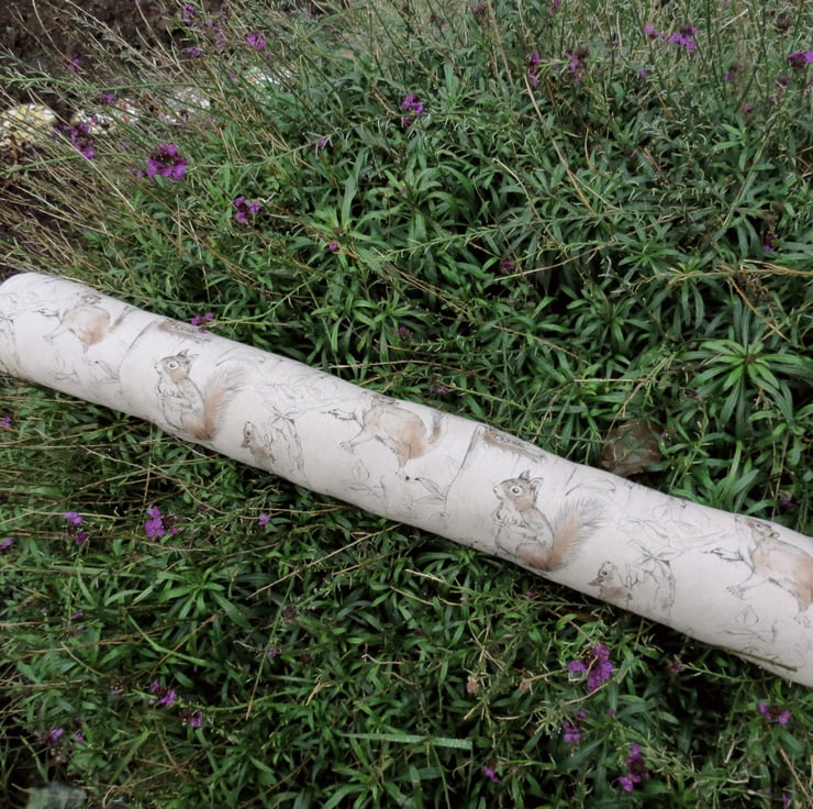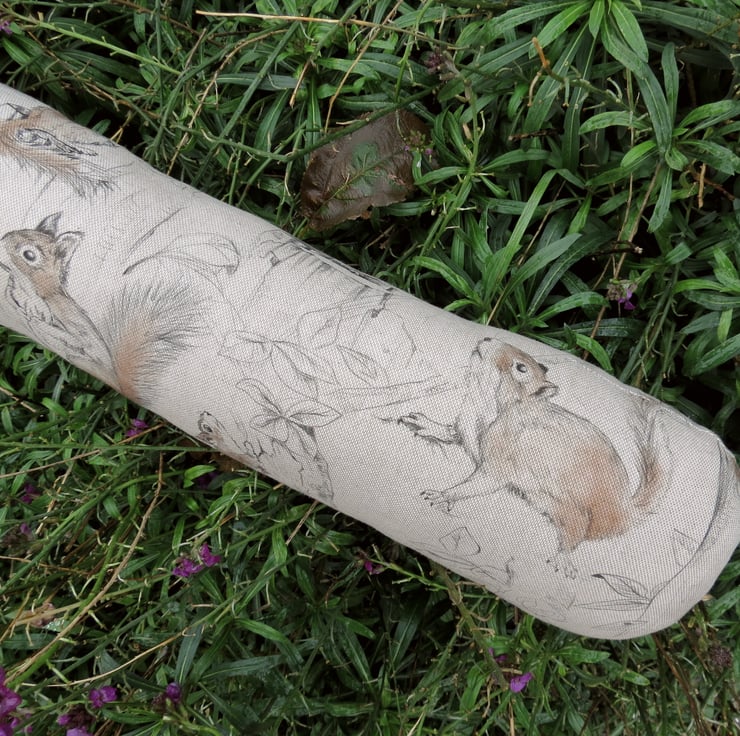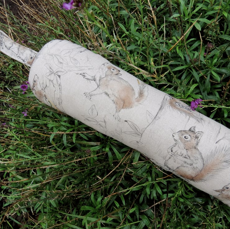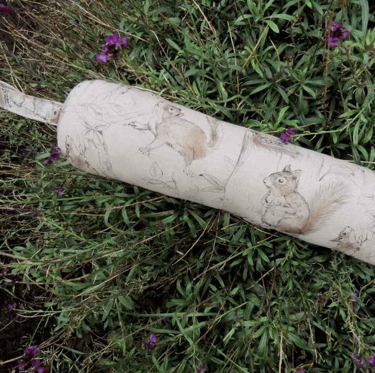 This draught excluder is made from a medium weight linen and cotton fabric, with a playful squirrels design.