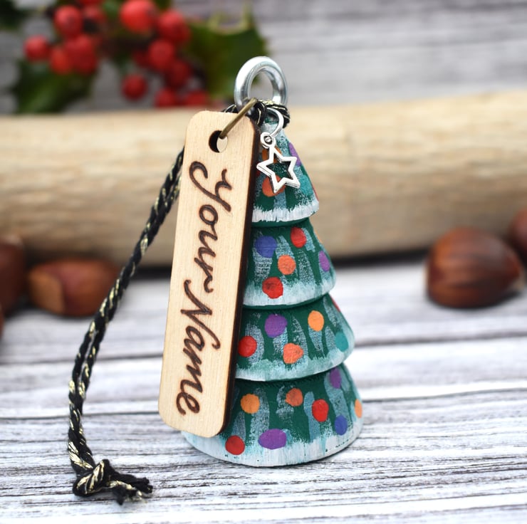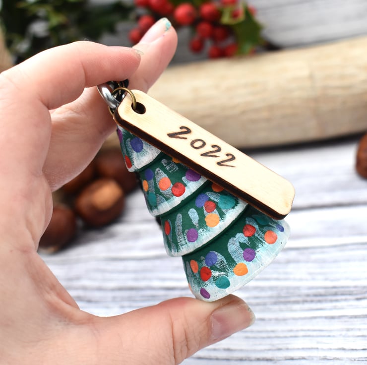 A hand painted Christmas tree, ideal to hang on your tree or anywhere you are festively decorating! This one is medium.