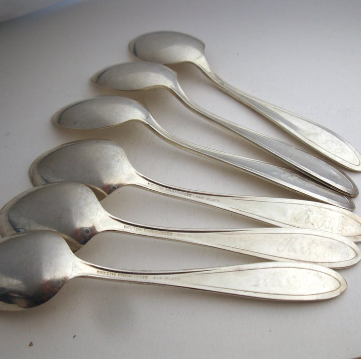 Please note: This is a set of vintage items that have been pre-owned. You will receive the six spoons shown in the photos. Please therefore study the photos with care and note that the spoons aren't perfect - they have wear marks, plate loss, and some traces of tarnish (possibly removeable with further cleaning - I have tried not to over-polish).