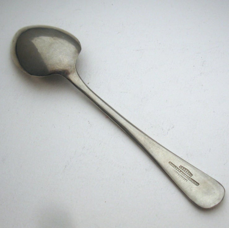 Please note this is a vintage spoon so it has hairline scratches and wear marks in the plating. I've also left it un-polished as I rather liked its patina (you could remove this with a drop of silver polish but this spoon is alloy not plated so it's never going to polish up as shiny as a silver-plated spoon, it'll always have that 'make do and mend' vibe.) This spoon has been around a bit and has character. It's a survivor. If you were looking for a mirror-finished brand new spoon, this isn't one. Just so you know.
