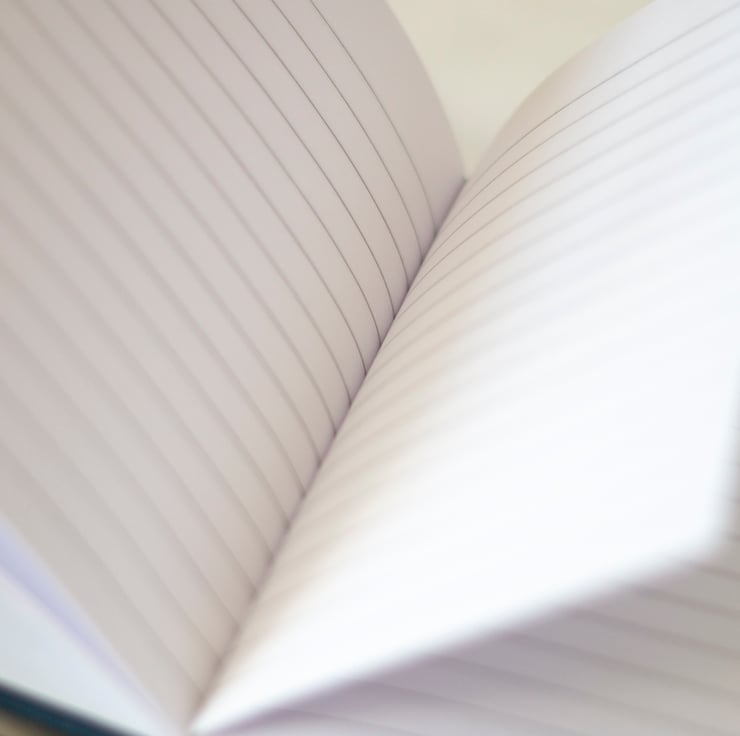 A lined hardback notebook is included. Please see the photograph to see the line placement. (It is a standard size so the cover can easily be put on a new notebook when this one is full!