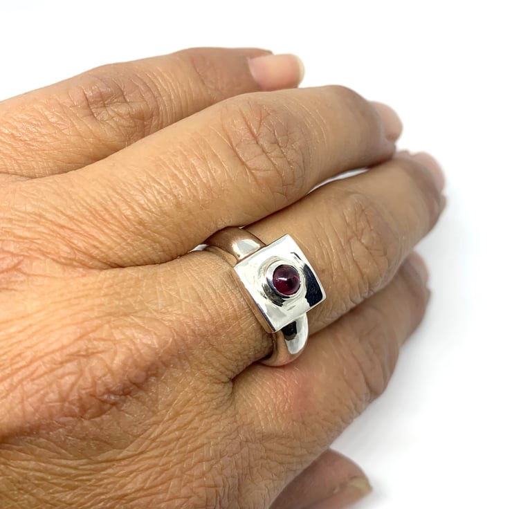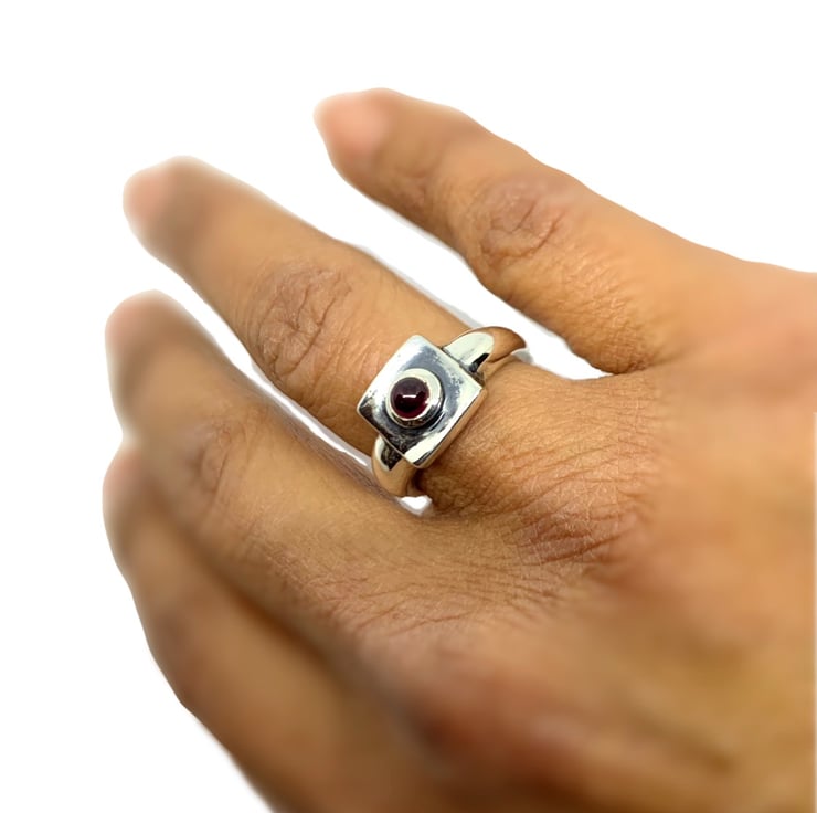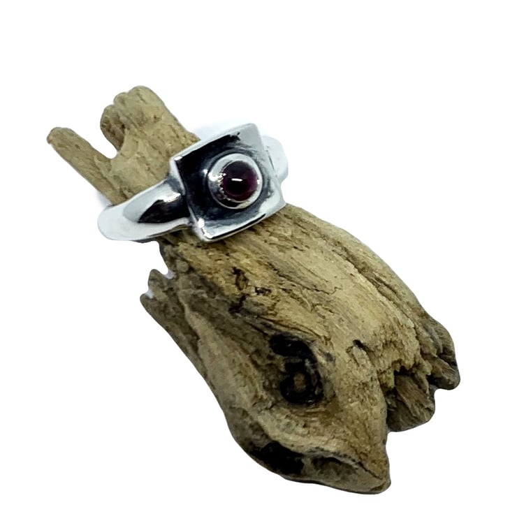 With garnet cabochon set in the centre, is a versatile piece that can be worn every day.