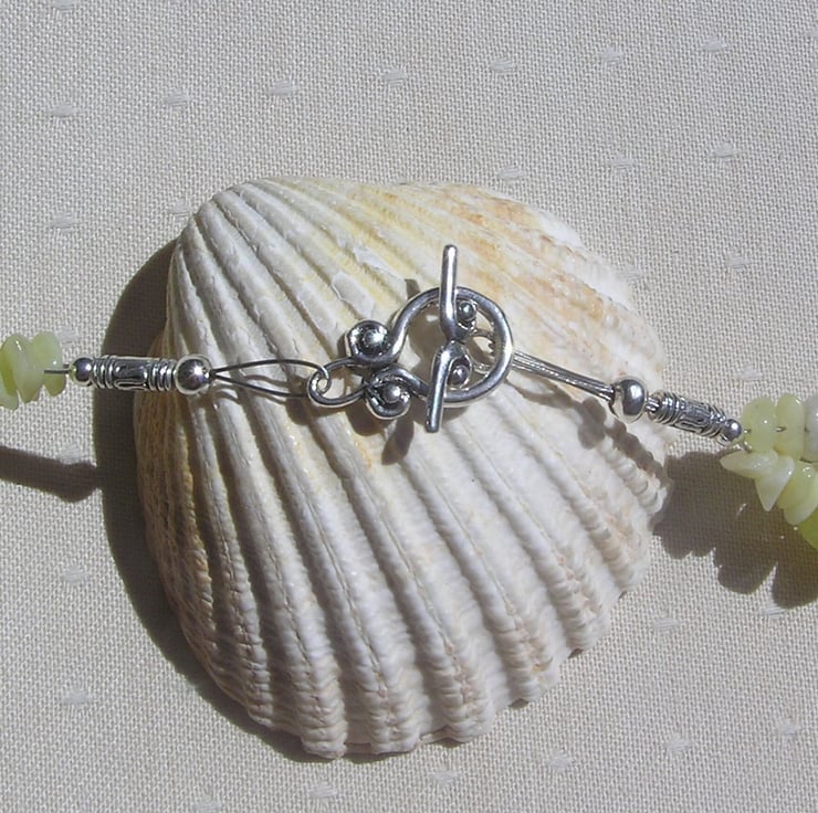 It fastens with a Silver Toggle Clasp