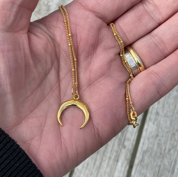 16mm Sterling Silver Cresent Moon on Sterling Silver satellite chain.
