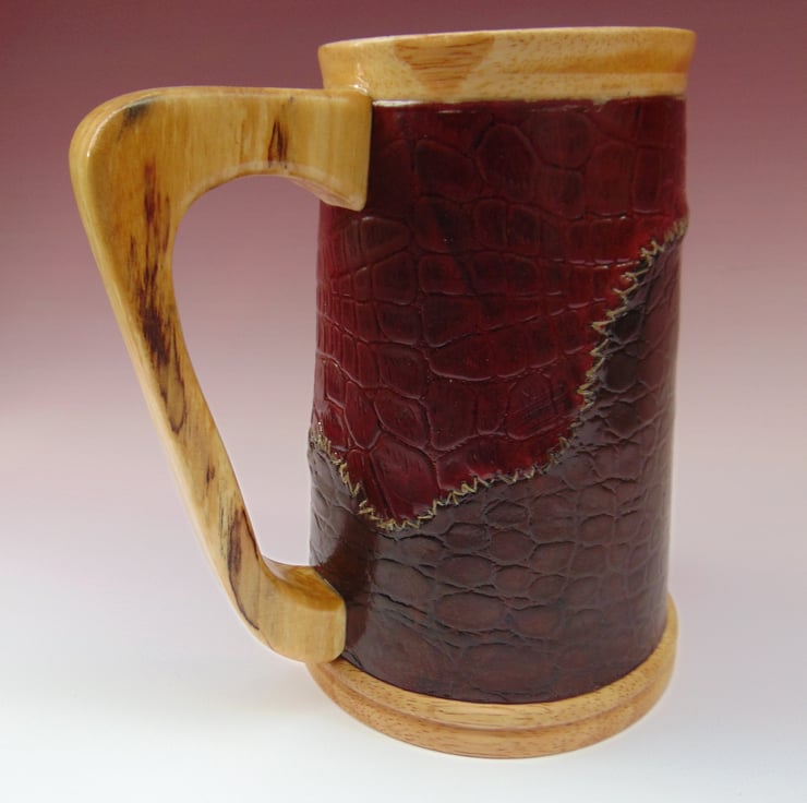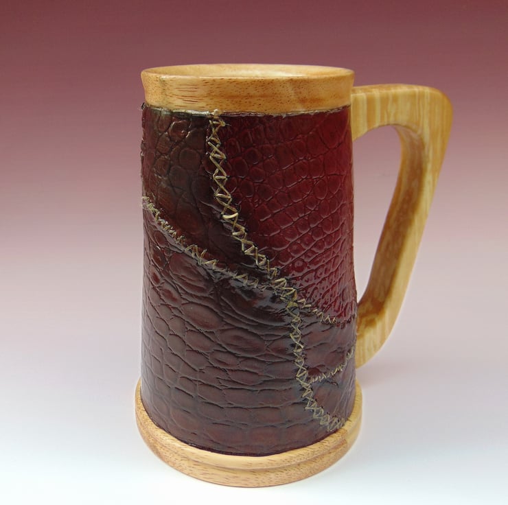 The turned body has then been covered with patchwork leather.