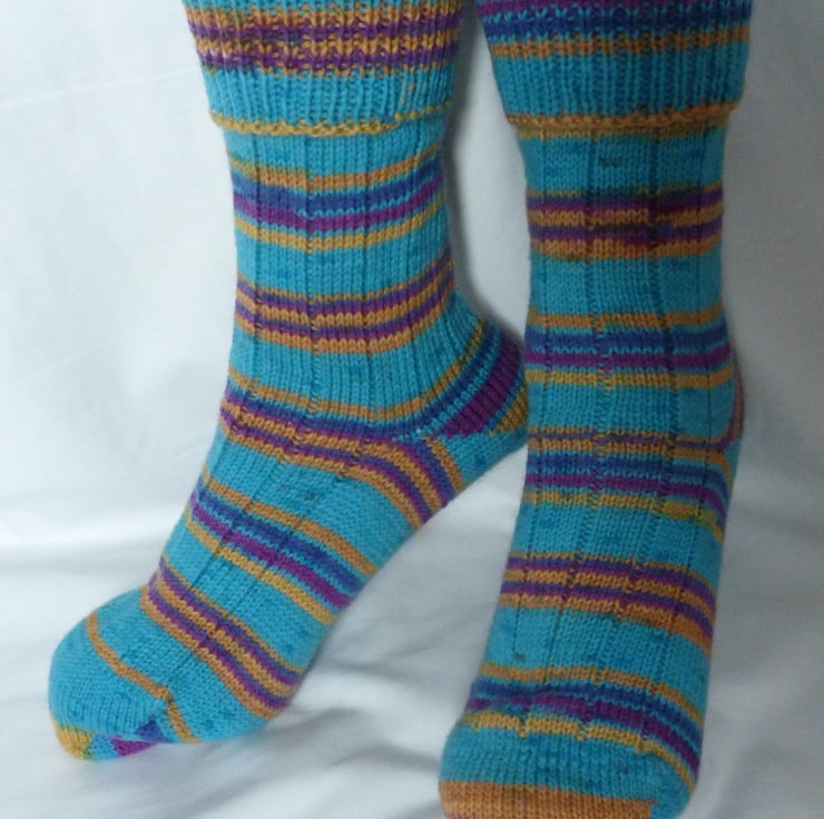 Knitted Ribbed Wool Socks size 6 to 7 UK comfortable fit