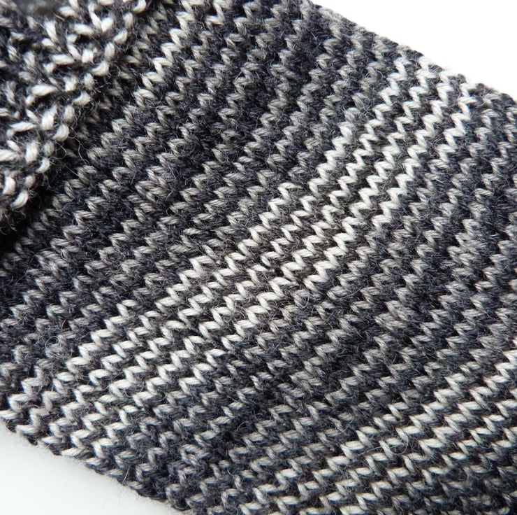 Knitted on an antique circular knitting machine and finished by hand
