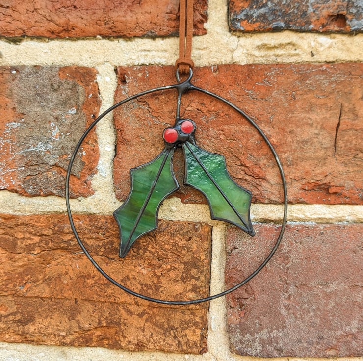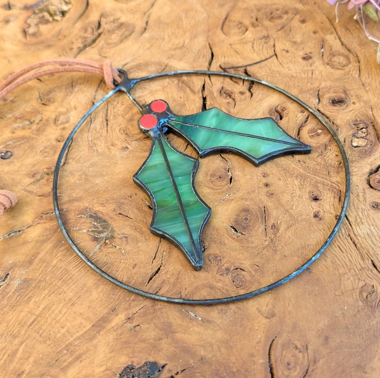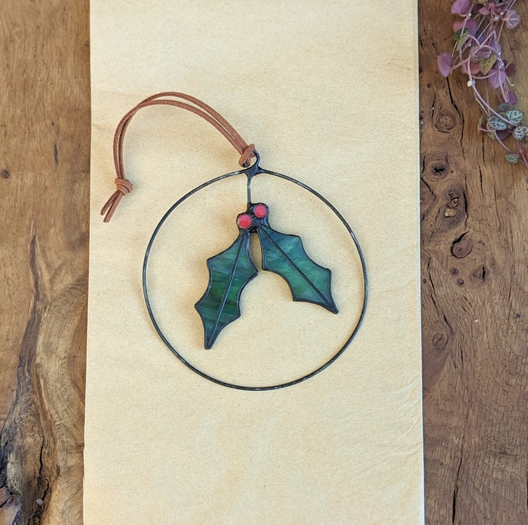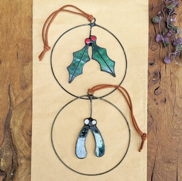 Stained glass holly or mistletoe wreath - an everlasting heirloom Christmas decoration to bring festive cheer, year after year! The mini wreath would make a beautiful stocking filler for the adults in your family.