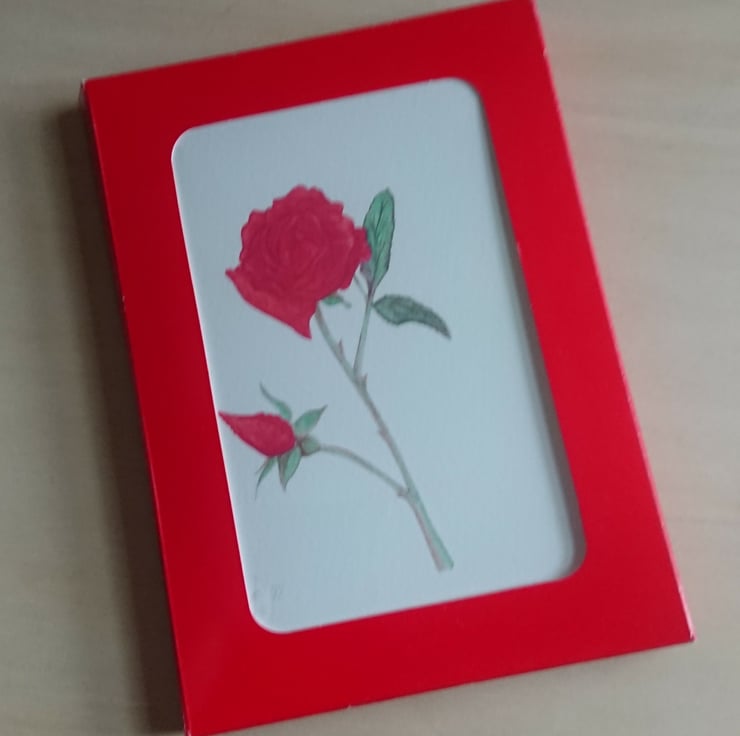 I print these red rose notecards with Epson Claria inks using a desktop inkjet printer onto 190 gsm digital fine art English watercolour paper.