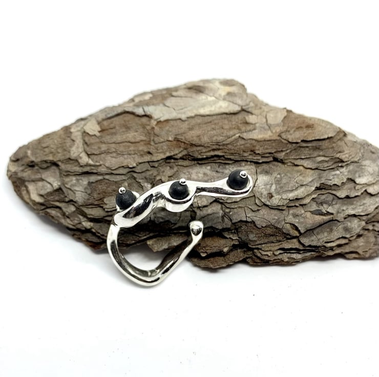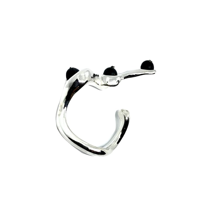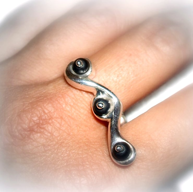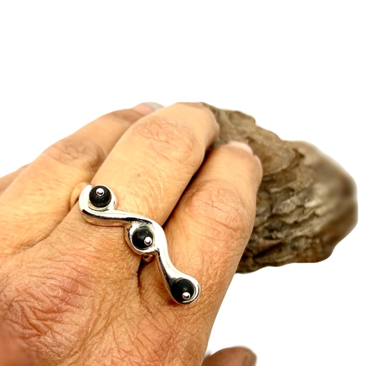 This ring is crafted from sterling silver 925 and features satin onyx beads.