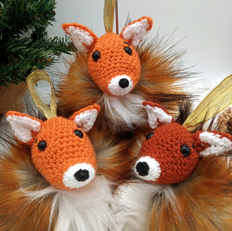 A String Theory original design they are crocheted in acrylic yarn in orange shades and I make the most fluffliest of faux-fur pom-poms myself to ensure they are properly, plump. Stores well, just give it a vigorous shake to wake up the floof!