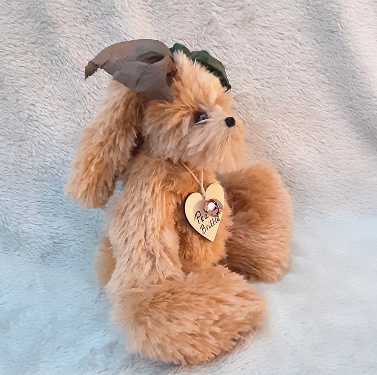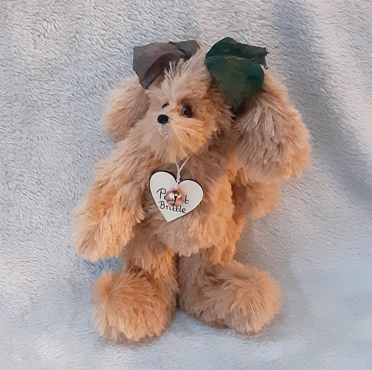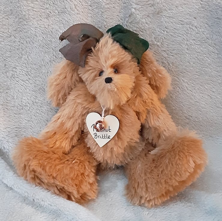 Finished with a lovely hand dyed silk ribbon bow to his head, Peanut Brittle would make a lovely keepsake gift or a unique addition for the bear collector.