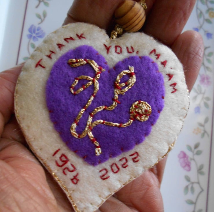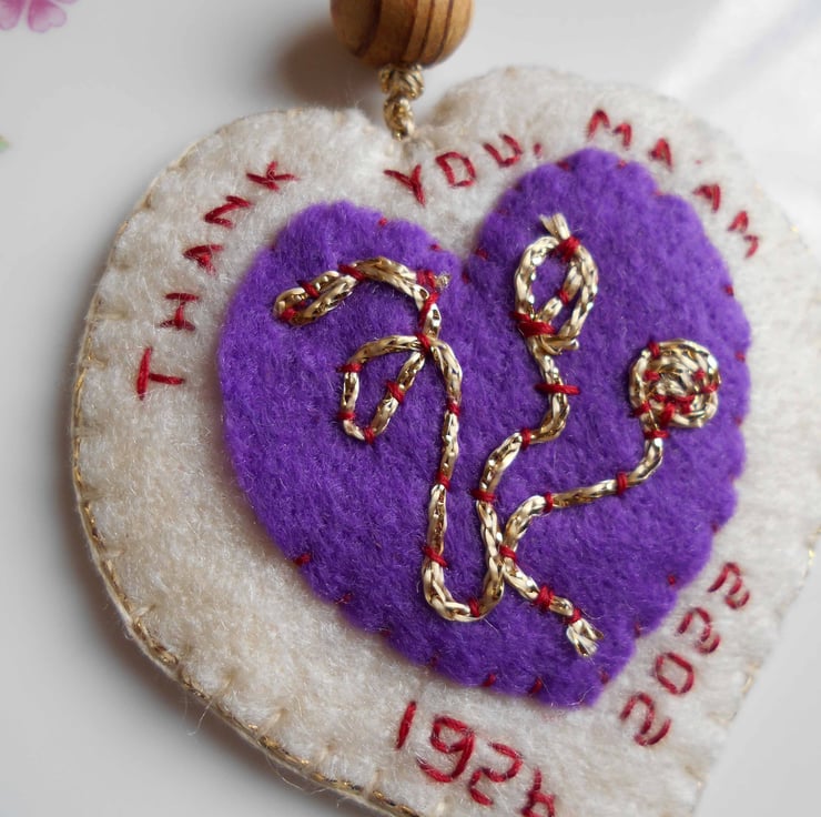 A beautifiul handmade heart decoration in tribute to Queen Elizabeth II's life and reign.