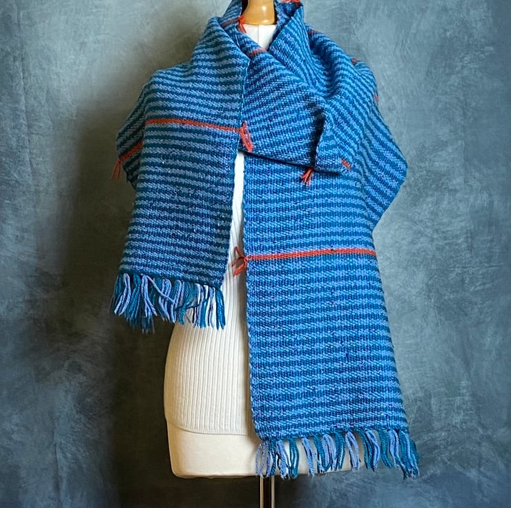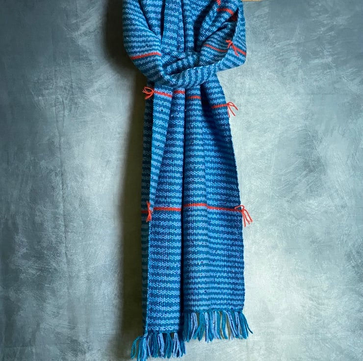 Woven by hand on my rigid heddle loom in my Suffolk home-studio, in a blend of wool and premium acrylic. This unique oversize scarf is super soft, warm, durable and uniquely stylish.