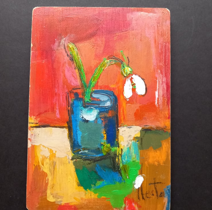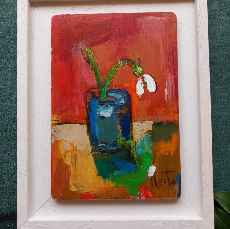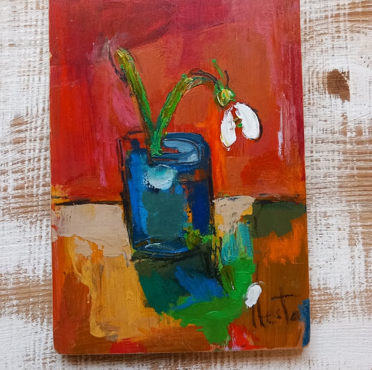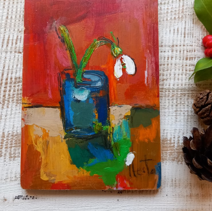Sweet snowdrop a symbol of hope and spring, painted on reclaimed wood 18 cm tall unframed but lightly varnished and a hook on the back ready to hang x