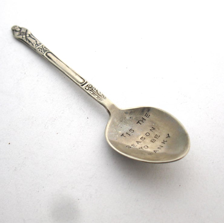 Have you started Xmas Shopping yet? If not, why not? Folksy is packed full of fabulous gift ideas and of course SPOONS are at the top of my suggestions list - they are long-lasting, planet-friendly, practical, postable and can be personalised to make the perfect gift for anybody, whether it's a budget buy for the office secret santa, a stocking filler for your partner, a joke present for your best mate or a classy offering for those well-off rellies who have everything (tip: I bet they don't have one of my spoons).
