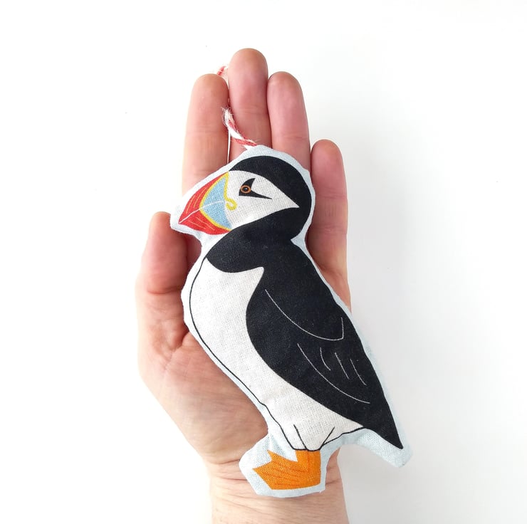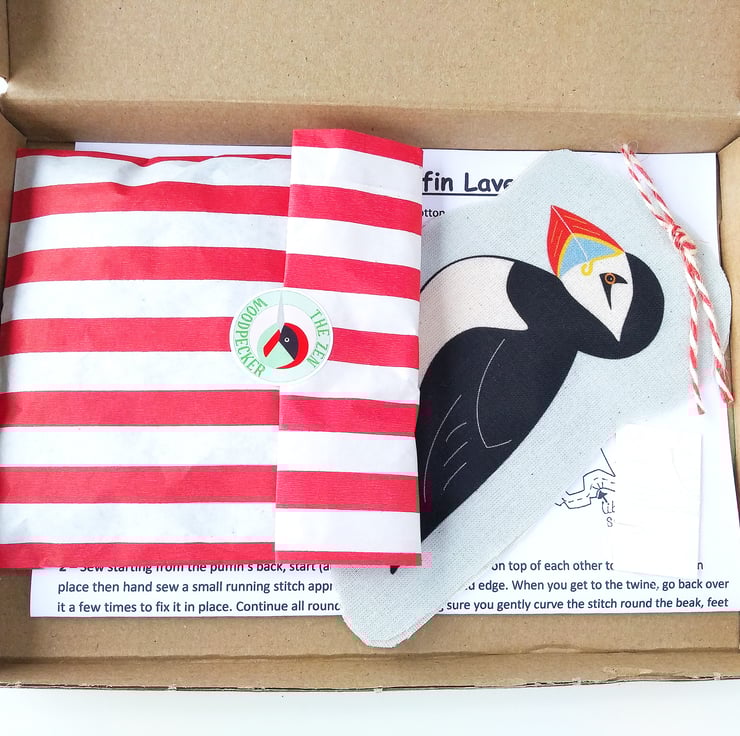 This kit comes with easy to follow instructions and two fabric puffins so that it becomes double sided. The fabric is designed by me and printed on organic cotton in the UK, I then make up the kits in my Norfolk studio.