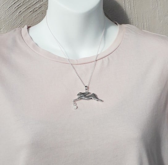 Solid sterling silver hare chasing the moons reflection necklace.