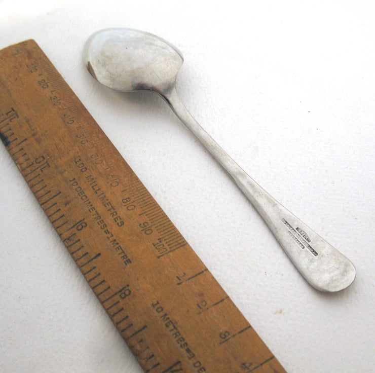 Please note this is a vintage spoon so it has a few hairline scratches and wear marks in the plating. This spoon has been around a bit (I think it's 1940s) and has character. It's a survivor. If you were looking for a mirror-finished brand new spoon, this isn't one. Just so you know.