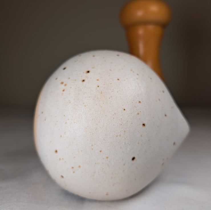 The salt piglet has been hand thrown on the wheel and glazed in a glossy lime green inside with a matt cream speckle on the outside, the spoon is also in the cream speckle.