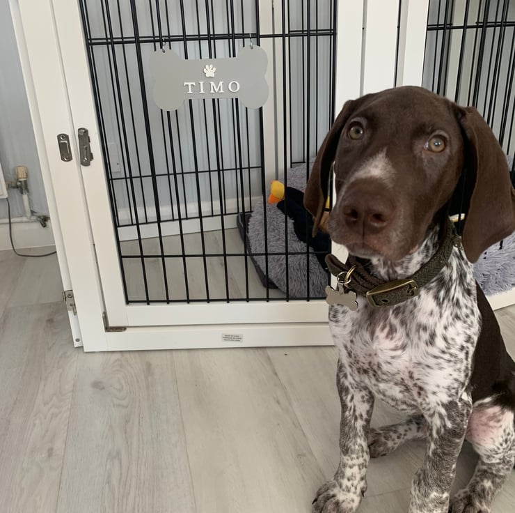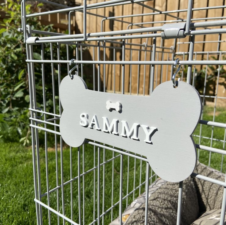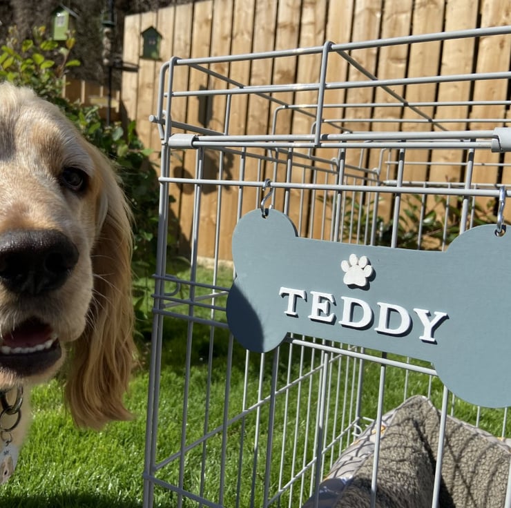 Personalised wooden dog crate name sign. Perfect to hang on your pup's crate to make it more homely and stylish.