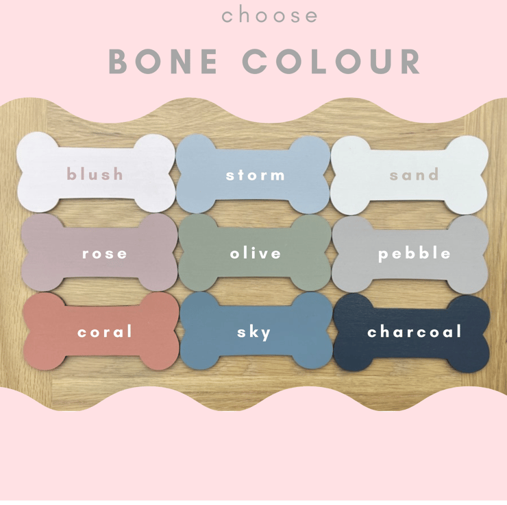 Fully customisable - please just message me the colour you would like the sign paining in as well as your dog's name and whether you would like a bone or paw shape above the name.