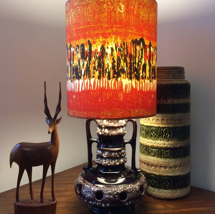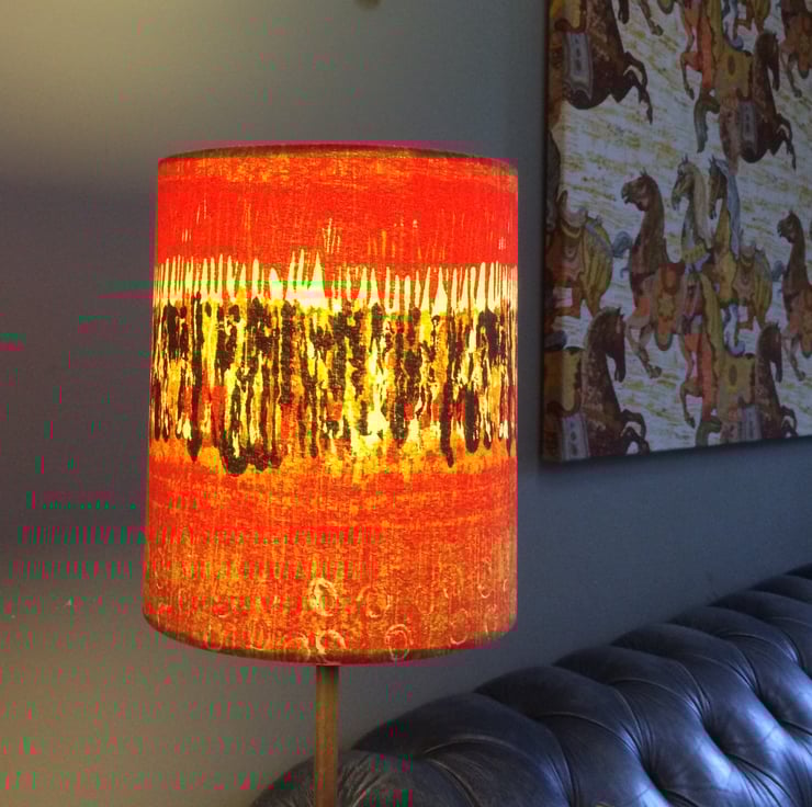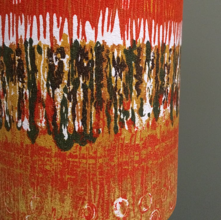 Olive Orange VIBRATIONS Nicola Wood Heals 60s MCM Vintage Fabric Lampshade - bold feature fabric for a lampshade in a modern, vintage or retro styled home.