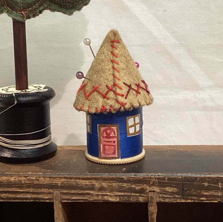 Very cute little pincushion made from a vintage cotton reel (of course!)