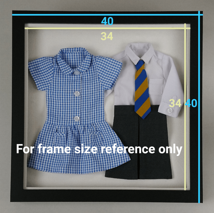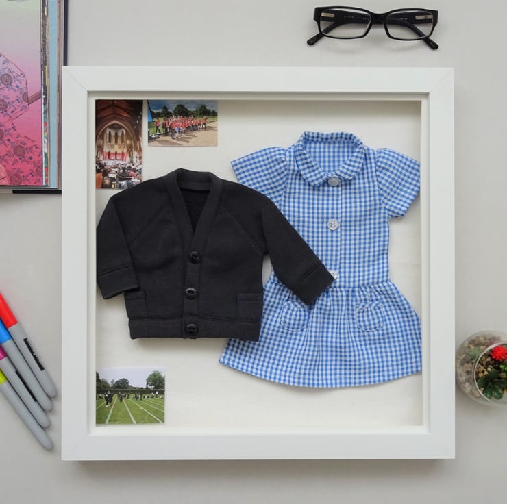 Made with YOUR(CHILD'S) school uniform, it is bespoke, miniaturised and framed, keeping as much of the original design as possible.