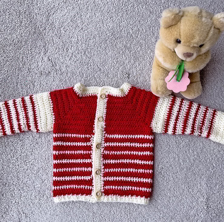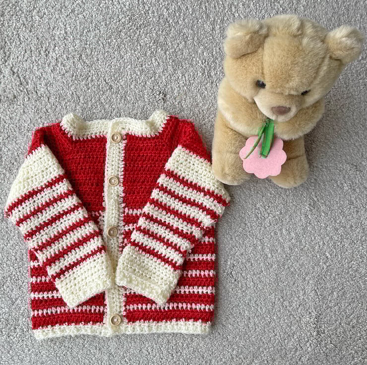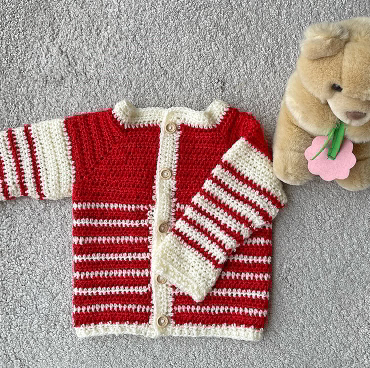 With Christmas less than a month away I decided to crochet a baby jacket in traditional Christmas colours, making an affordable gift for the youngest member of families.