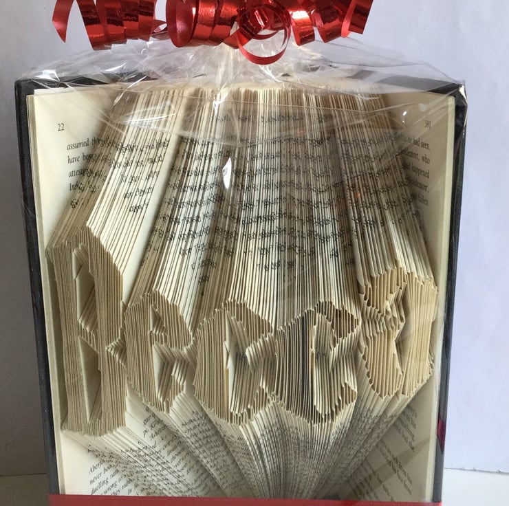 Pages are left either side of the book and the name folded into the middle with a ribbon to secure in place and will come Gift Wrapped With My Compliments