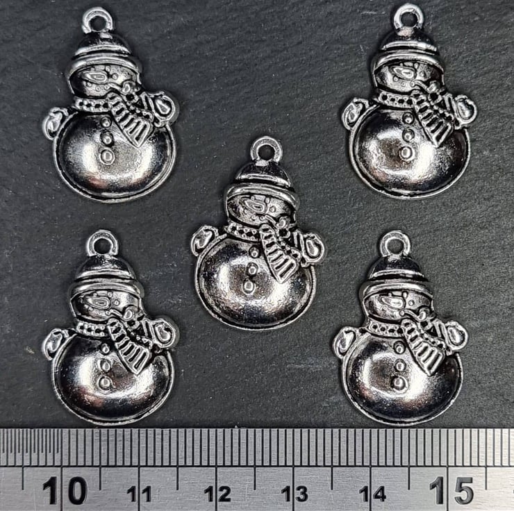 5 silver tone snowman charms