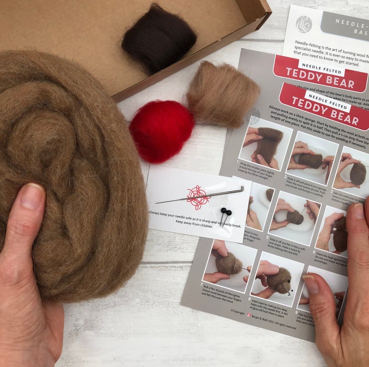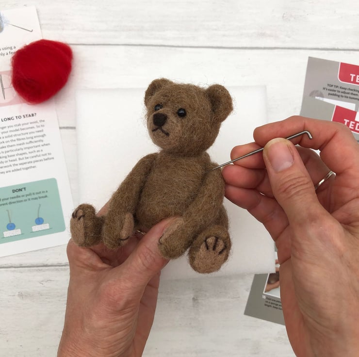Learn how to make a sweet little teddy bear with this needle-felting craft kit for adults containing 100% natural, cruelty-free wool fibres.