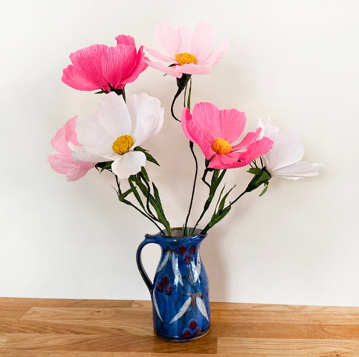 The cosmos is a glorious flower that blooms all summer and can often be the last bit of colour in the garden as autumn sets in. Celebrate this hardy little flower by making SIX of them out of paper. The crepe inside this kit has been designed to hold its shape while still looking delicate and life-like.